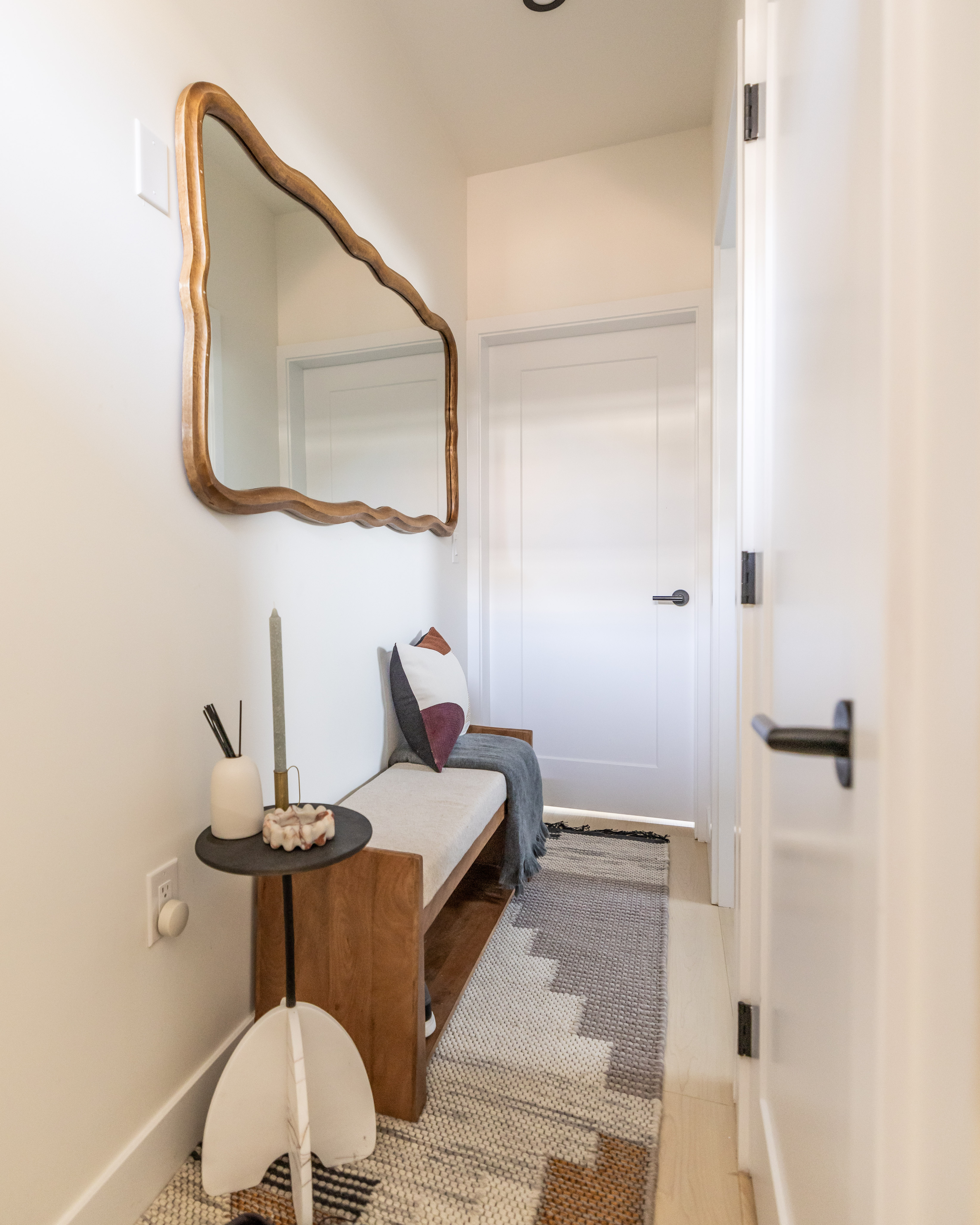 Focus: The vision was to create a home that feels intentional rather than compact—one that supports daily rituals, remote work, and moments of retreat without excess. Designed for a couple, with one resident working from home, the layout prioritizes light, built-in functionality, and a restrained interior language. Every square foot was considered not to maximize density, but to elevate comfort, clarity, and livability.